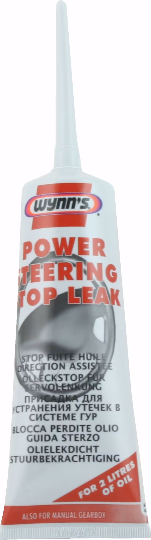 Stop Leak är ett oljelösligt supplement. Är till för de bilar som har problem med läckande servostyrning eller som rycker/hackar när man vrider på ratten. Produkten rengör kanalerna från smuts och partiklar som stör oljeflödet i styrservon. Perfekt produkt mot trög servostyrning. Förebygger och stoppar oljeläckage utan isärtagning. Stoppar oljeläckage av servoolja och rengör kanalerna i servosystemet från smuts och partiklar. Reducerar oljud och hjälper mot trög, hackande servostyrning vid rattutslag. Varmkör motorn. Tillsätt tubens innehåll i servobehållaren - överfyll inte. Varmkör dagligen i minst 4-5 dagar för att uppnå effekt. Ratta mycket. Alternera fullt rattutslag på både vänster och höger sida i minst 4-5 dagar. TÄNK PÅ! Produkten kan användas när som helst under ett oljebytesintervall. Wynn´s Power Steering Stop Leak är blandbar med Dexron 2, Dexron 3, Dexron 6, LHM, Citroën, Ford och oljor med motsvarande specifikationer. Den är också blandbar med servooljor G 002 000 till VW, Audi, Seat, Skoda, Porsche, BMW, Mercedes, Saab, Volvo och andra märken med motsvarande oljespecifikationer.