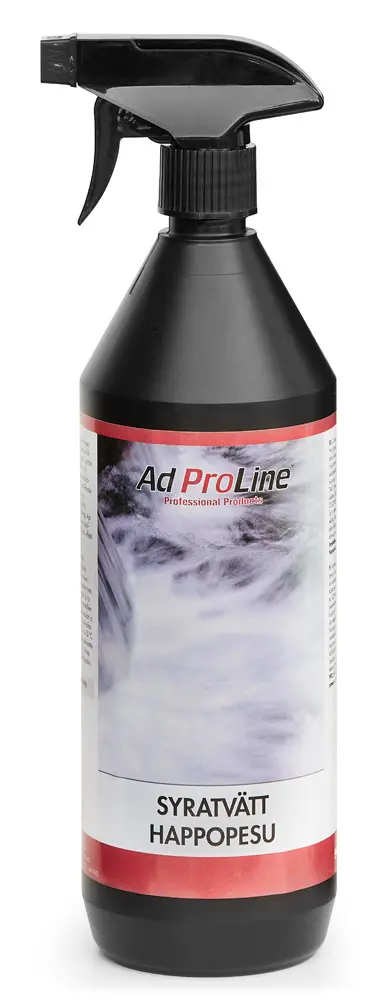 AdProline® Syratvätt är speciellt framtagen för effektiv rengöring av svårt nedsmutsade fälgar. Kan även användas på väggar, golv, portar, tågvagnar, båtar etc. Löser oxid, rost och järnfläckar samt kalk och cement. Vid användning på lättmetall vidtag försiktighet beträffande verkningstid. Vid för lång verkningstid kan frätskador uppstå på ytan.