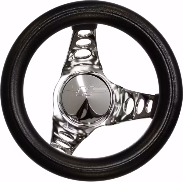 8 1/2" dia.ratt med kromade ekrar(3 håls) och svart skumkrans 4 1/2" djup.