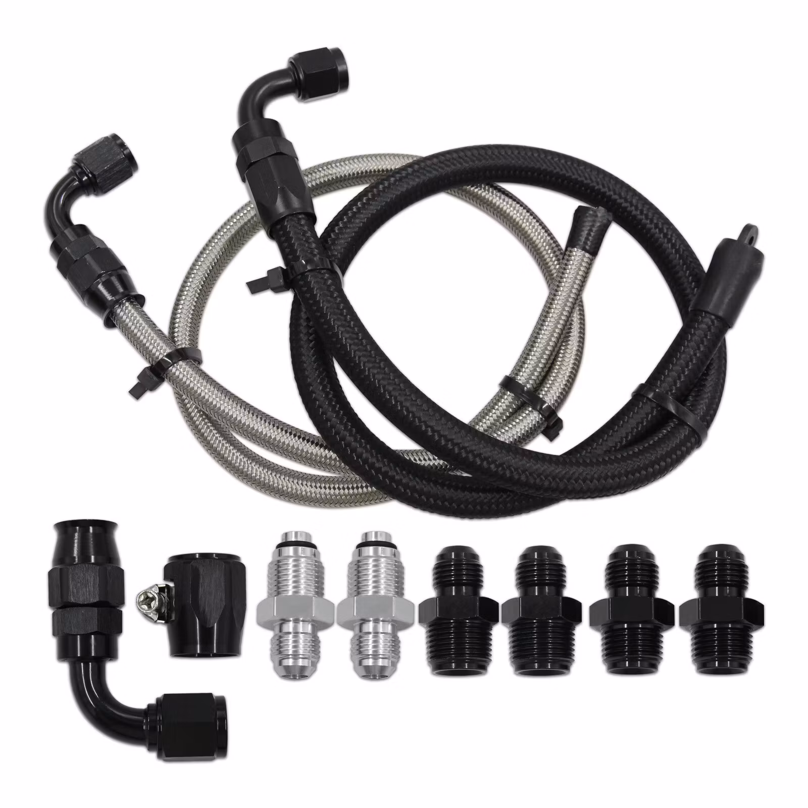 1x 60cm 3/8" rostfri flätad gummislang med a-AN6 90 graders slangkoppling