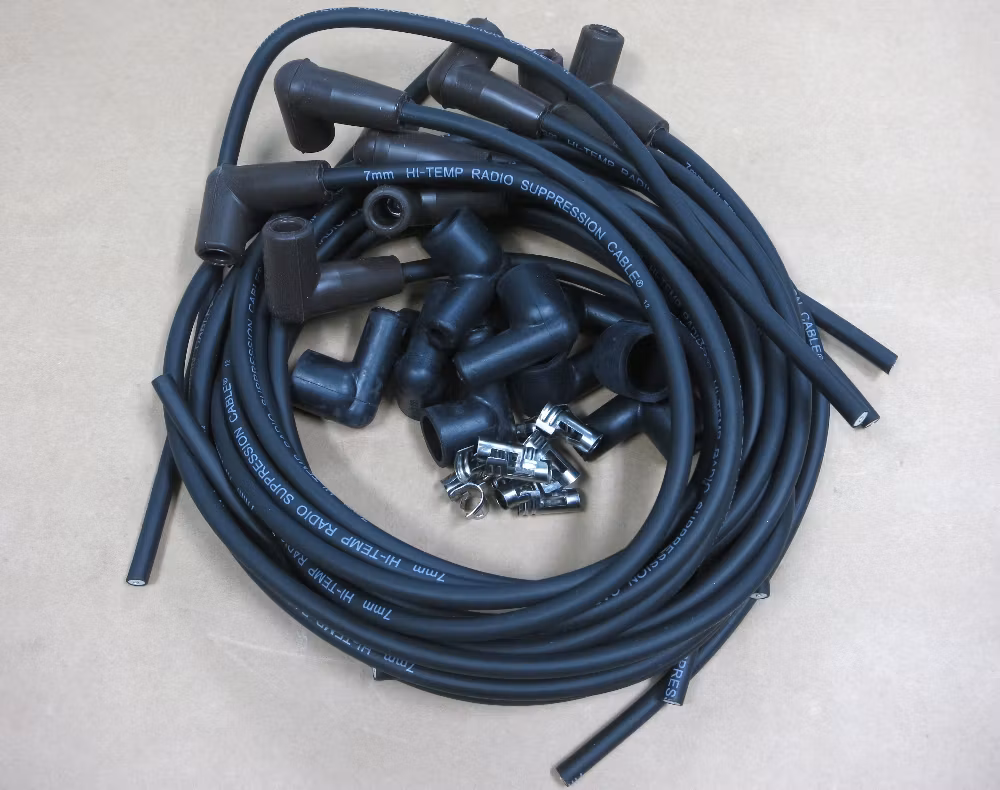 Tändkabelsats universal Ø7mm 90° svart med metalledare.