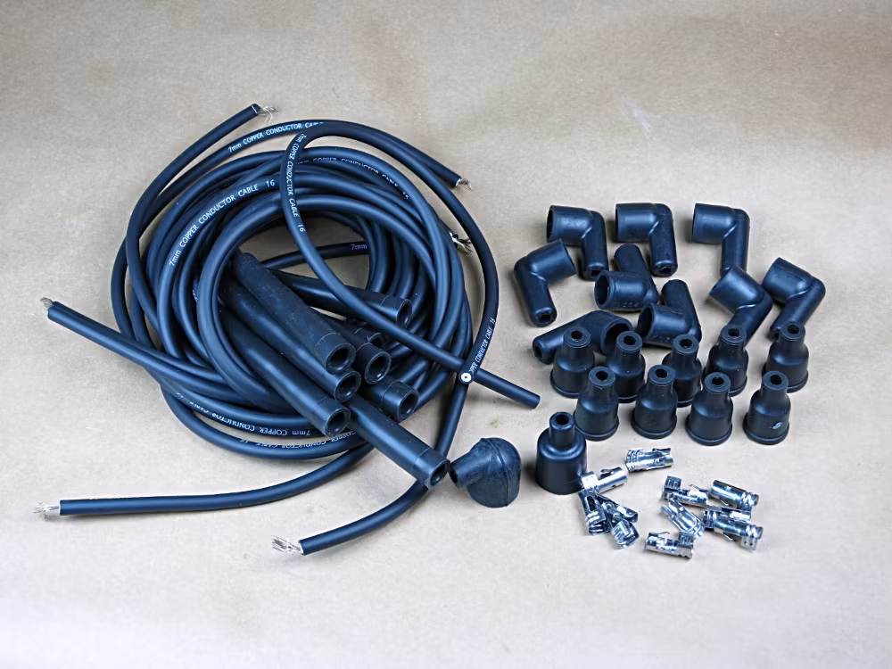 Tändkabelsats universal Ø7mm rak svart med metalledare.